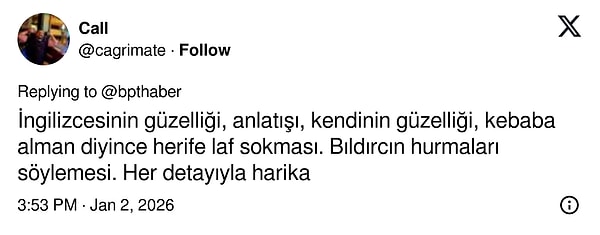 İngilizcesi eleştiri kaldıracak durumda olmadığından, totolarından başka şeyler bulup eleştiriyorlar. Gayet tebessümle izlemiştim.