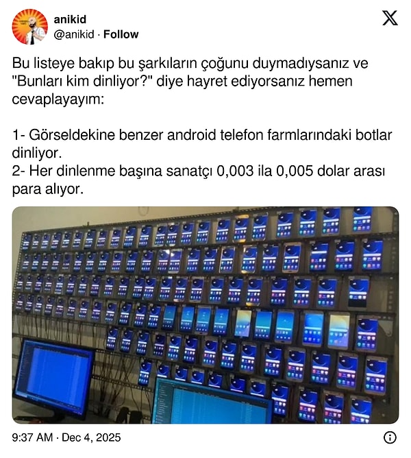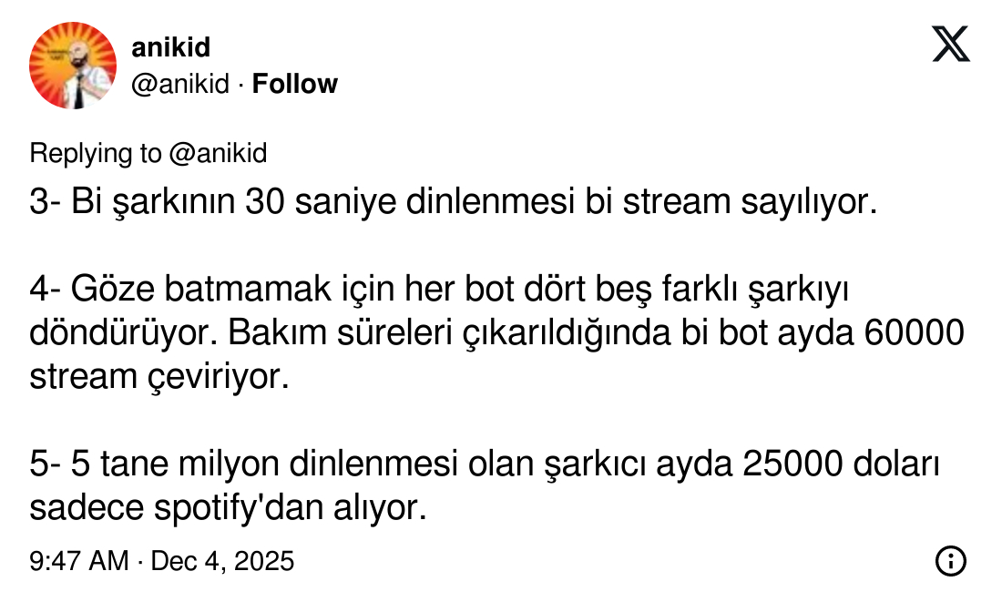 Müzik piyasasında uzun süredir konuşulan "botla dinlenme satın alınıyor" tartışması, Spotify’ın 2025 yılı Türkiye verilerinin açıklanmasıyla yeniden patladı.