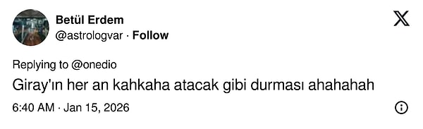 2026 ELLE Style Awards gecesinde Ceyda Düvenci’nin konuklardan “yanınızdakinin elini tutup gözlerinin içine bakarak iyi ki varsın deyin” isteği salonda kahkahalara neden oldu. O anlarda sahnede Düvenci’nin yanında duran Giray Altınok’un “Ben ne izliyorum şu an?” bakışları ise dikkatli gözlerden kaçmadı. Konuklar söyleneni yaparken salonda gülüşmeler yükseldi, Altınok’un mimikleri ise geceye ayrı bir renk kattı. O anlar kısa sürede konuşulan anlardan biri oldu. 😅