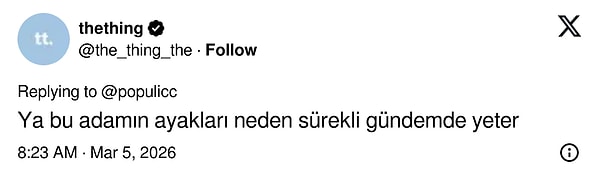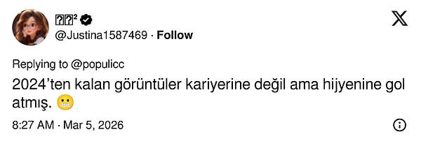 Hatta bazı kullanıcılar görüntünün “sanki aylardır duş almamış gibi göründüğünü” söyleyerek yorum üstüne yorum yaptı. Kısacası Blanco’nun ayakları bir kez daha viral olurken sosyal medya kullanıcıları da bu görüntüler karşısında “Bu kadar da olmaz!” demekten kendini alamadı.