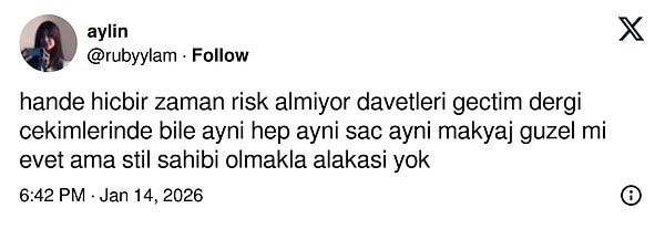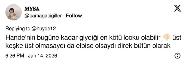 Elbette kombinine aşık olanlar, bu kombini taşıyabildiği için inanılmaz bir kadın olduğunu düşünenler vardı fakat bu sefer Hande'yi beğenmeyenler çoğunluktaydı.