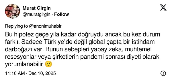 Kendisine bu dönemde neden iş ilanlarının yok denecek kadar az olduğunu soranlar için duruma açıklık getiren bir kadın, yeni dönem ile ilgili de ipuçları verdi.