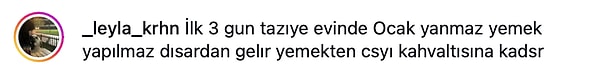 Anadoluda hala cenaze evlerinde yemek pişirilmez, komşular günlerce cenaze evine yemek taşır. Fakat pek çok yerde cenaze sahibinden yemek vermesi bekleniyor. Üzerine bir de dağıtılan yemekler üzerine yorumlar yapılıyor.