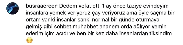 Komşusu vefat eden 'aysgl_erdnn' isimli sosyal medya kullanıcısı, taziye evinde duyduğu akılalmaz konuşmaları paylaştı. Kadının anlattıkları izleyenlerin sinirini bozdu.