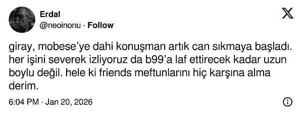İzlediği işlerde duygu aradığını söyleyen Giray Altınok'un açıklamaları sosyal medya kullanıcılarına büyük bir hayal kırıklığı yaşatırken tepki de göstermelerine sebep oldu.