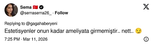 Ünlü isim zaman zaman yaptırdığı işlemleri açıkça dile getirerek “genç kalma” konusundaki iddiasını da sık sık vurguluyor. Özellikle yüz germe işlemleri, cilt uygulamaları ve farklı estetik müdahaleleriyle adından söz ettiren Sayan, son olarak paylaşılan fotoğrafıyla gündeme geldi.