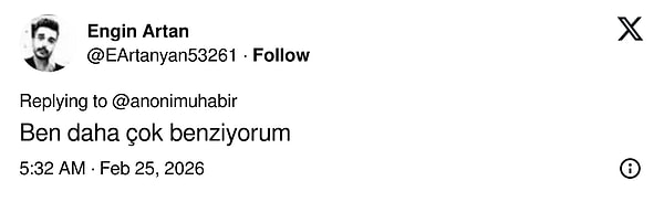 Sercan Şahin Kurtulmuş, elindeki kartı okuyarak seyircilere “Hangi ünlüye benzetiliyorsunuz?” sorusunu yöneltti ve mikrofonu izleyicilere uzattı.