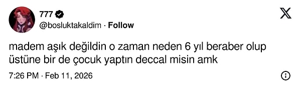 “Çocuğumu dünyaya getirdiği için ona her zaman saygı duyup seveceğim ama hiç aşık oldum mu bilmiyorum.”